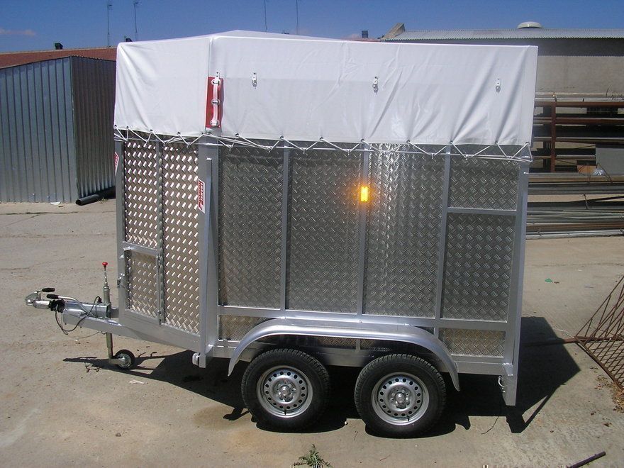 Remolque diseñado para el transporte de dos caballos. Cuenta con separadores interiores y con guadarnés para depositar las monturas u otros accesorios. - 2 ejes de 1.000 kg. cada uno - Ruedas 175/70/13 - Enganche reforzado para 2.000 kg - Equipado con frenos de inercia - Techo de lona (a elegir entre varios colores) - Rueda hockey - Divisiones interiores con guadarnés. - Suelo de goma antideslizante de fácil limpieza - Puerta en rampa - Sistema antirrobo - Rueda de repuesto - Galvanizado en caliente (opcional)